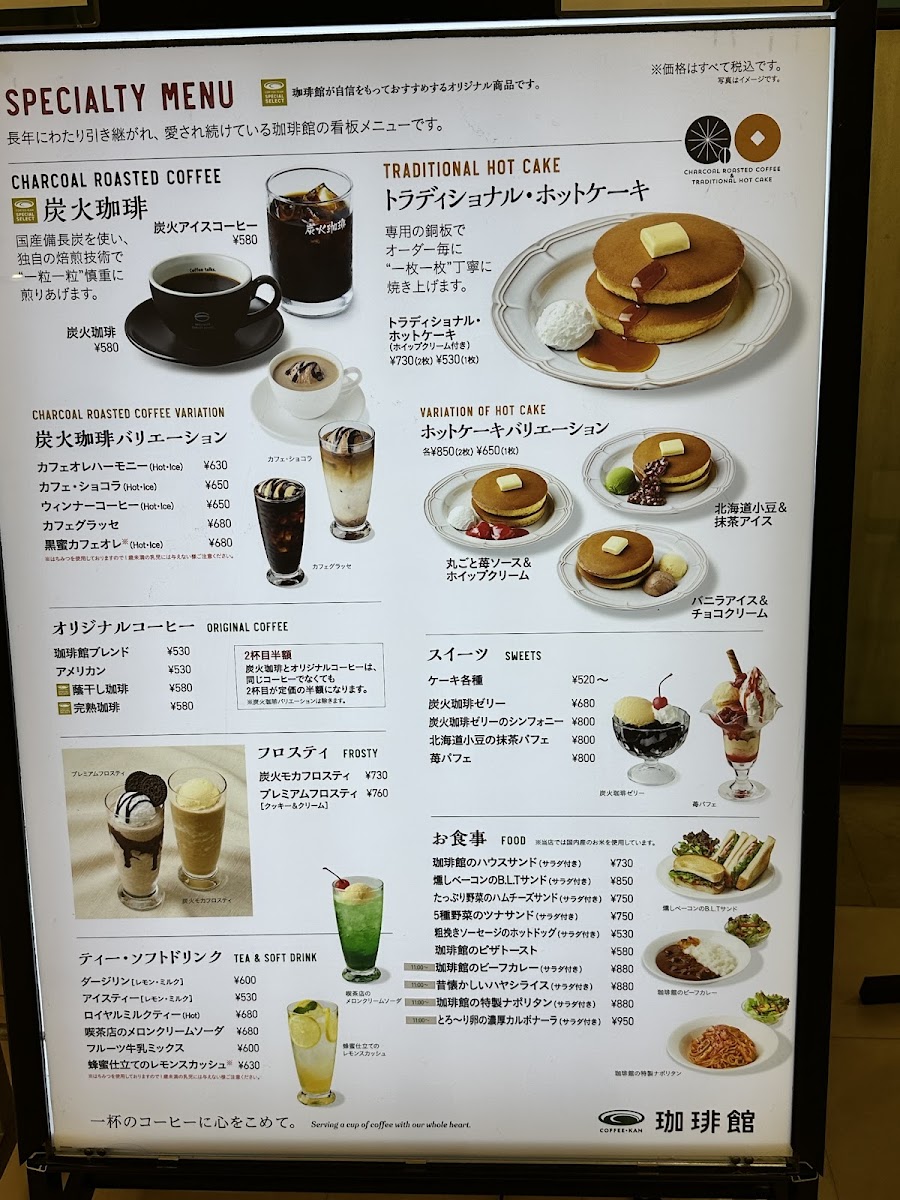 The menu at Coffee-Kan - Shibuya offers a delightful range of comforting dishes and beverages, making it a perfect spot for both casual meals and coffee breaks. One of the standout items is the コーヒー ホット ケーキ, a deliciously fluffy pancake dish that pairs perfectly with their signature coffee. For a heartier option, the ランチのサンドイッチ provides a satisfying meal with fresh ingredients, ideal for those looking for something light yet filling. Coffee lovers will appreciate the rich and aromatic 珈琲館ブレンド, a blend that perfectly complements any of the sweet or savory offerings. For those craving something more substantial, the カツカレー is a must-try, with its crispy pork cutlet served alongside a flavorful curry sauce that hits all the right notes. Lastly, the コーヒー&ホットドッグ combination is a classic pairing, ideal for a quick and satisfying bite with a cup of expertly brewed coffee. Whether you're stopping by for a snack or a full meal, Coffee-Kan - Shibuya’s menu provides a variety of comforting choices that make every visit enjoyable.